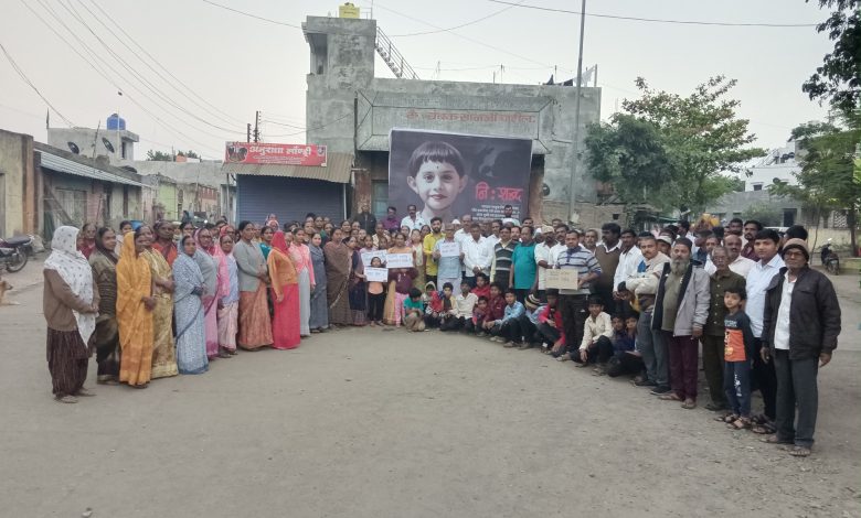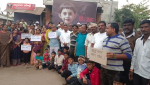 ग्रामस्थांची कँडल मार्च काढीत निष्पाप बालिकेस श्रद्धांजली.